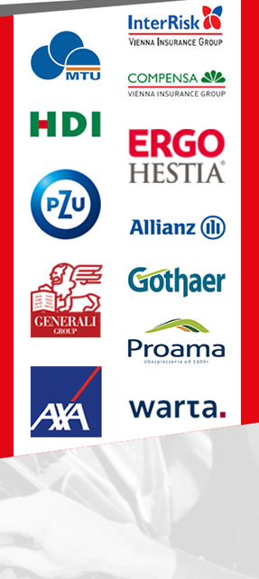 Należymy do sieci naprawczej: INTERRISK, COMPENSA, ERGO HESTIA, MTU, ALIANZ, GOTHER, PROAMA, WARTA, HDI i wiele innych…